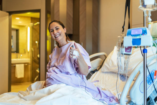 Young pregnant woman in the hospital ward and ready to delivery a baby.